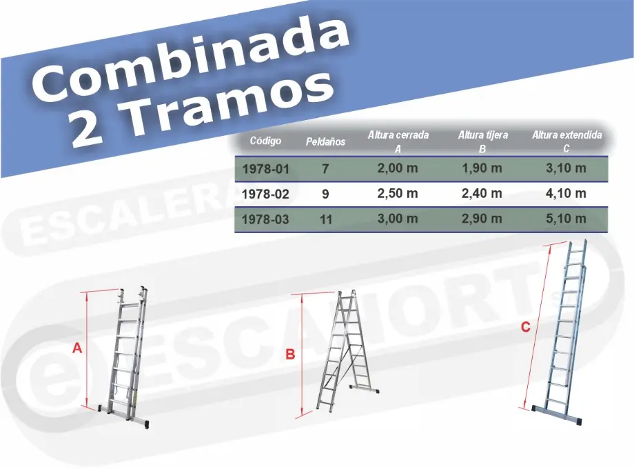 Escalera combinada 2 hojas aluminio 136kg 11+11=3,10-5,20m
